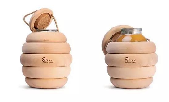 以蜜蜂肚子為創意靈感的蜂蜜包裝設計。